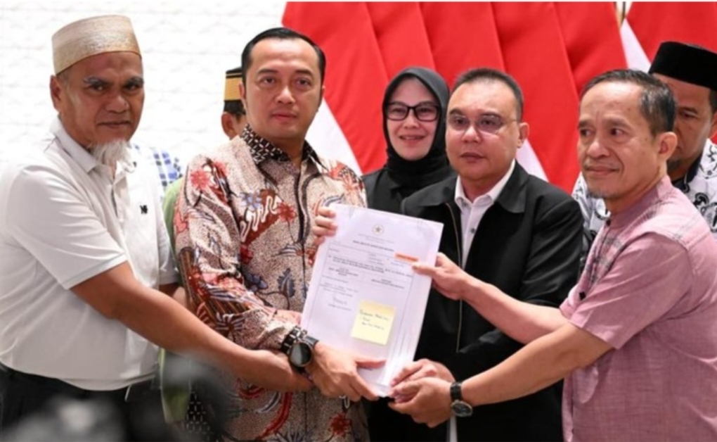 Presiden RI Prabowo Subianto menanda tangani Surat Rehabilitasi Nama Drs. Abdul Muis dan Drs. Rasnal M. Pd, Setelah di PTDH Gubernur Sulawesi Selatan Andi Sudirman Sulaiman.